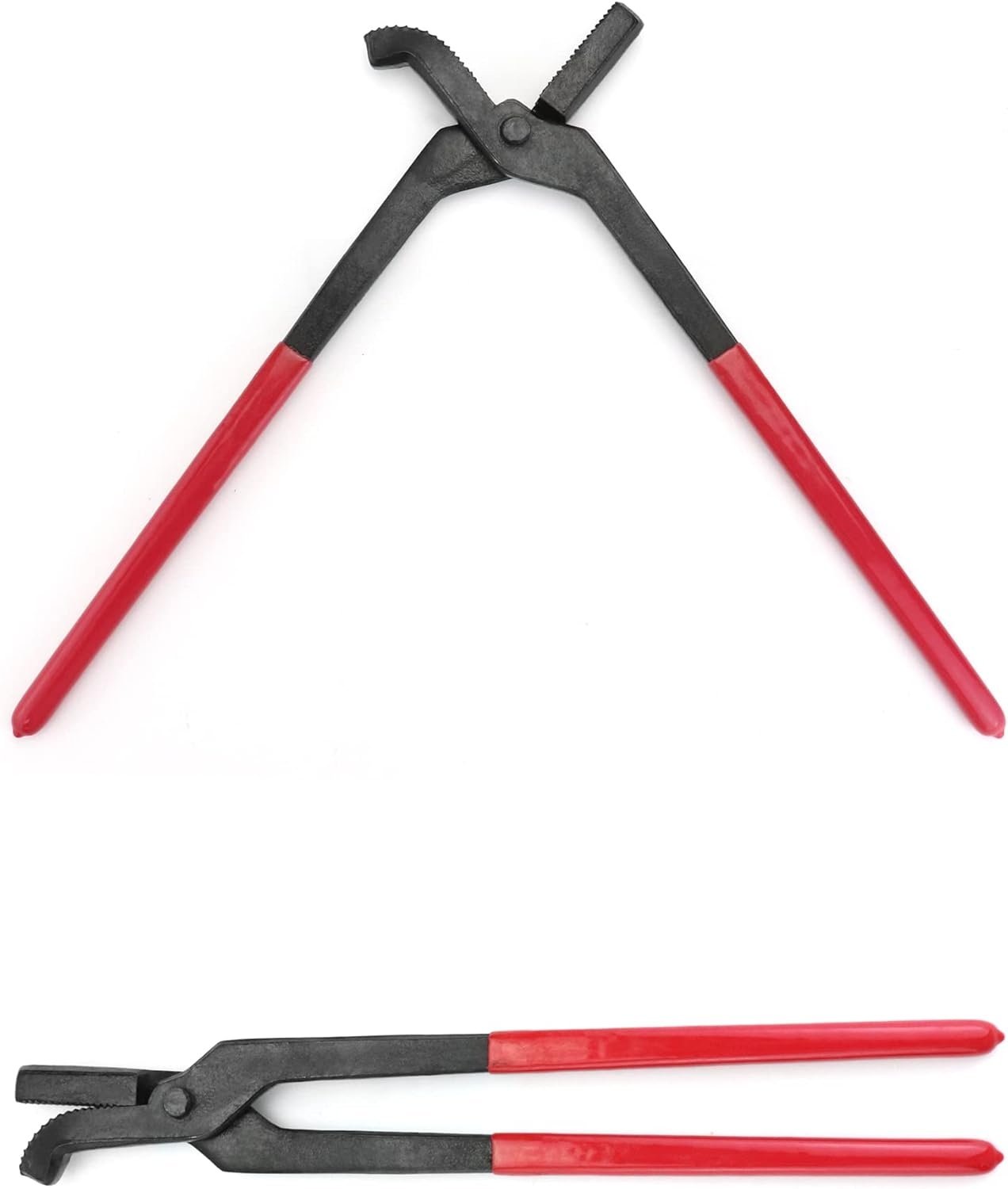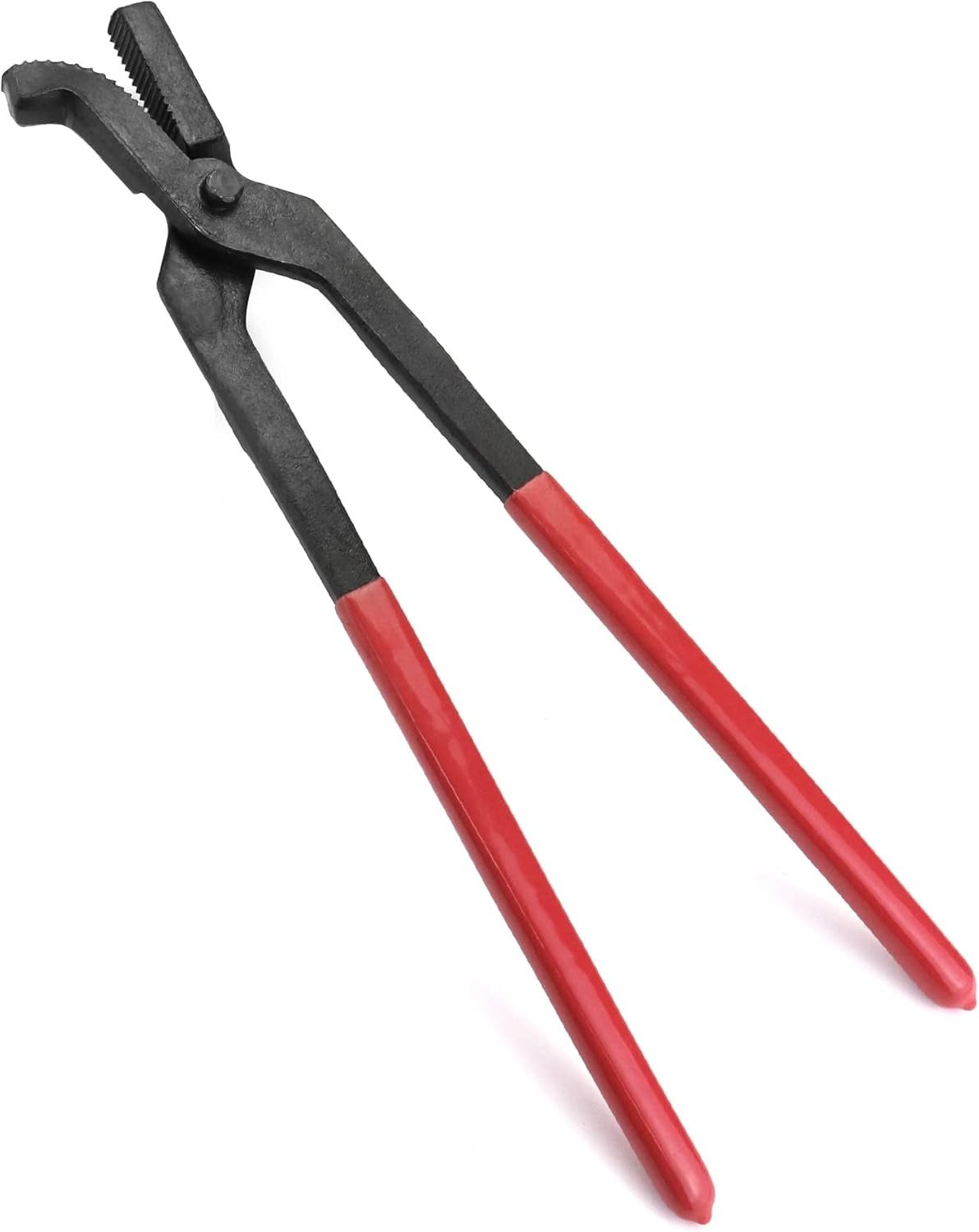 Forged from tough high-carbon steel with a durable black head and vibrant red non-slip coated handles, this horse hoof clincher features serrated, curved jaws that grip nail heads firmly along the taper for clean, controlled bending. The ergonomic red grips provide excellent comfort and control, while the sturdy construction delivers strong leverage for effortless clinching without slipping or damaging the hoof wall or shoe.
