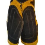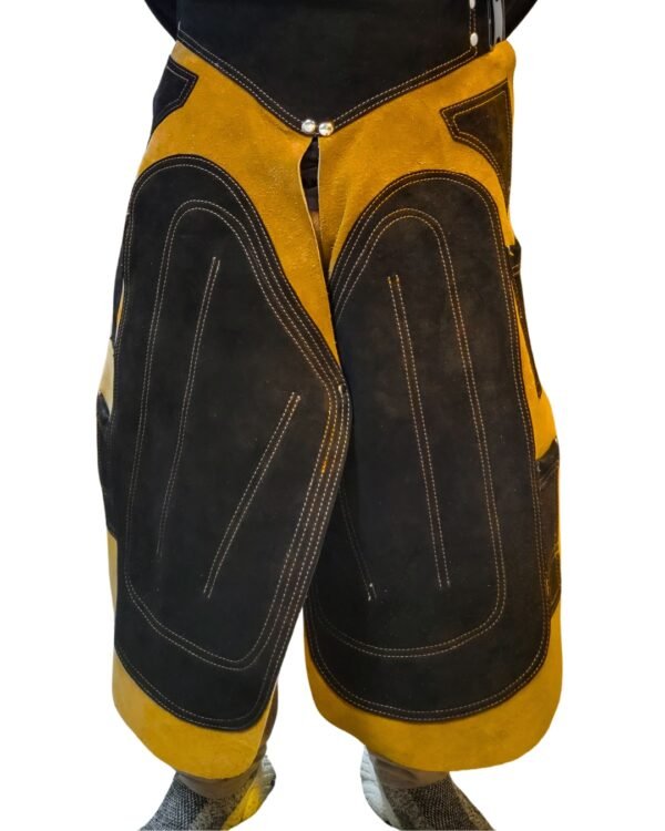 High-quality full-grain suede leather – tough tan/brown outer layer resists wear, heat, sparks, and impacts; black reinforced sections add extra protection where it matters most
