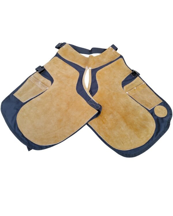 Get the best of both worlds with our premium hybrid leather and canvas farrier apron (farrier chaps) – engineered for professional farriers, equine blacksmiths, and horse owners who demand rugged protection, lightweight comfort, and smart tool organization during hoof trimming, shoeing, nailing, and therapeutic work. The combination of tough suede-style leather panels and heavy-duty canvas fabric reinforcements delivers superior abrasion resistance, flexibility, and breathability while shielding your legs from kicks, sharp tools, hot shoes, nail punctures, and daily wear.