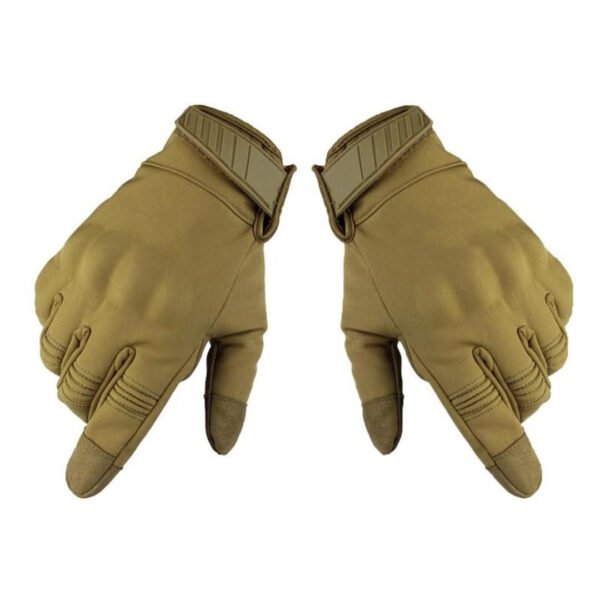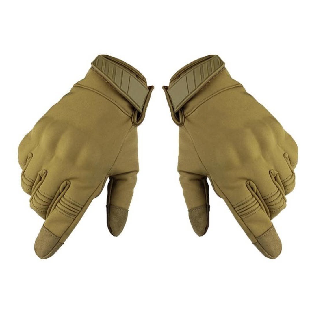 Durable synthetic construction – Coyote tan synthetic leather (or microfiber equivalent) on palms, fingers, and high-wear areas for superior grip, puncture/abrasion resistance, and touchscreen compatibility in many similar models; stretch fabric back (nylon/polyester/spandex blend) ensures flexibility, breathability, and quick drying