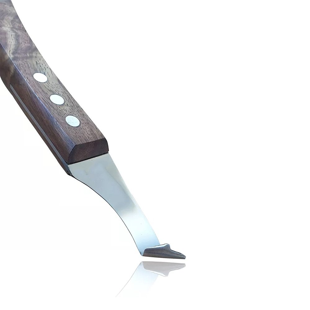 Professional Hoof Knife with J2 Steel Blade & Premium Walnut Handle – premium farrier trimming tool engineered for sharp, precise, and comfortable hoof work on horses, ponies, donkeys, goats, sheep, and livestock.
