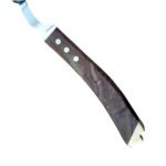 Featuring a high-performance J2 steel blade (premium Japanese stainless steel renowned for exceptional hardness, superior edge retention, and excellent corrosion resistance), this horse hoof knife delivers clean, smooth, and effortless cuts through tough hoof walls, soles, frogs, bars, and white line areas with long-lasting sharpness and minimal resharpening required. The curved blade profile provides outstanding reach into frog pockets and tight hoof spaces, while the polished stainless steel tang blends seamlessly into a rich, ergonomic wooden handle secured with brass rivets for a secure, comfortable, non-slip grip and timeless classic style.