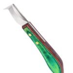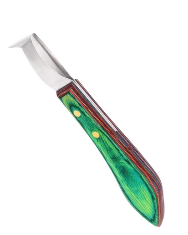 Professional Loop Knife with Hook Tip & Multi-Color Wooden Handle – specialized farrier trimming tool designed for precise loop cutting, hooked detailing, and advanced hoof work on horses, ponies, donkeys, goats, sheep, and livestock.