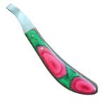 Add this striking multi-color J2 steel loop hoof knife to your farrier essentials – delivering specialized cutting precision, premium durability, and a bold, artistic look for advanced equine and livestock hoof health results every time.