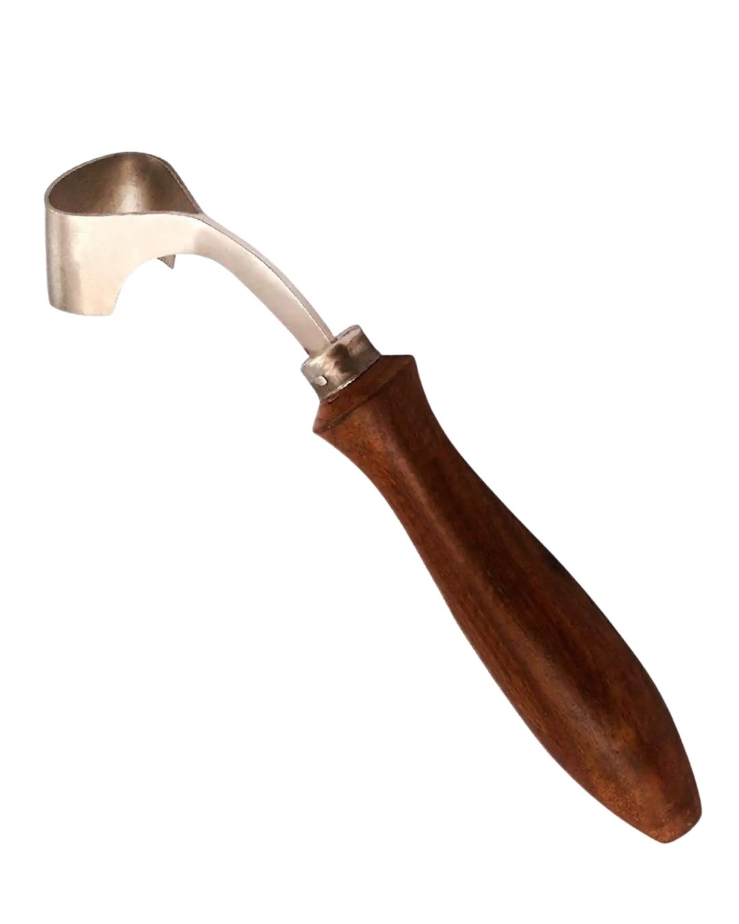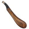 Professional Loop Knife with J2 Steel Blade & Natural Wooden Handle – specialized farrier trimming tool featuring a distinctive wide, shallow, open-loop cutting edge designed for broad, sweeping cuts and efficient material removal during hoof trimming on horses, ponies, donkeys, goats, sheep, and livestock.