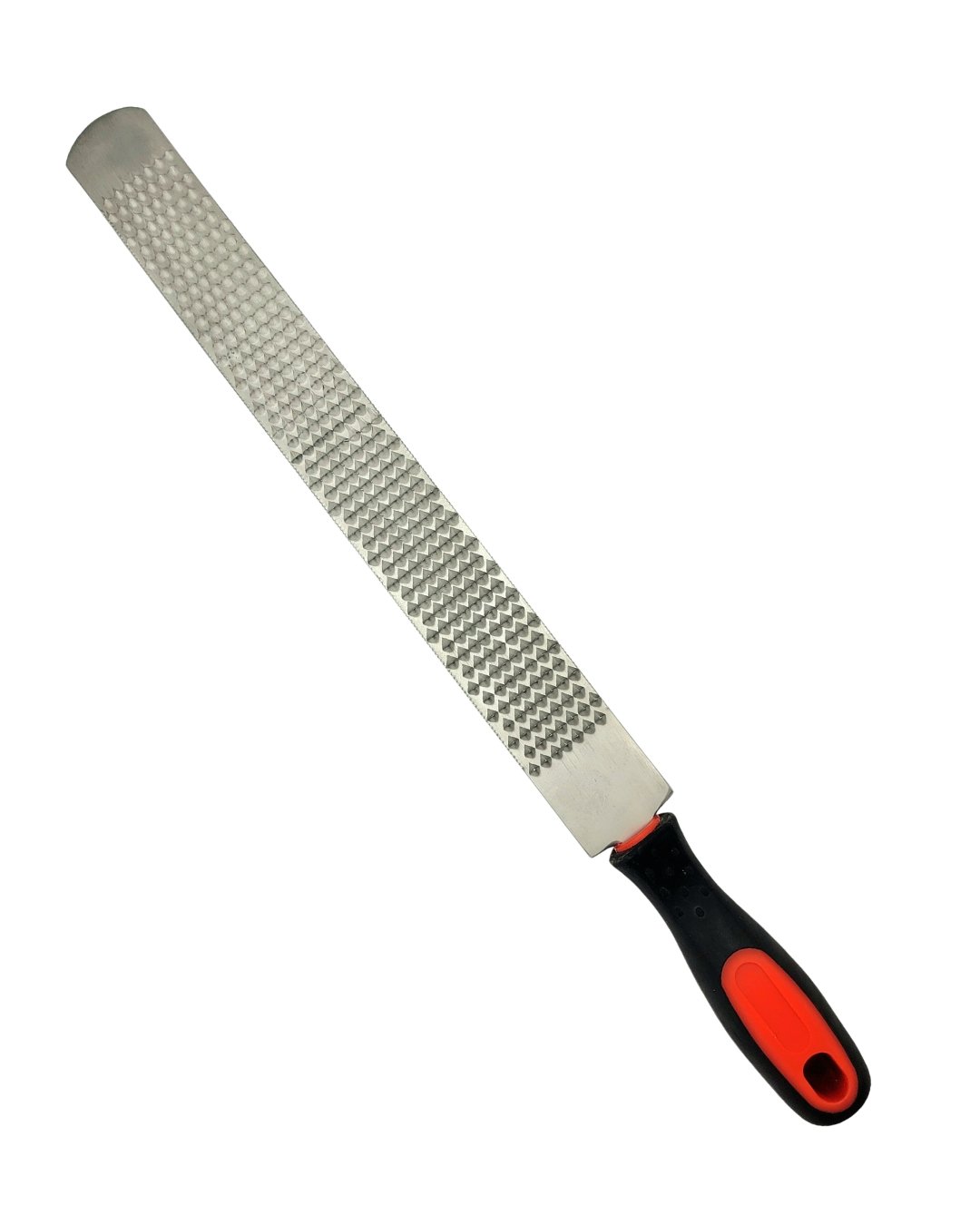 Double-sided for versatility: coarse rasp side (sharp pyramid teeth for quick, efficient material removal with minimal effort) and fine file side (for polishing and eliminating ridges). Built from high-quality hardened stainless steel for lasting sharpness and durability.
