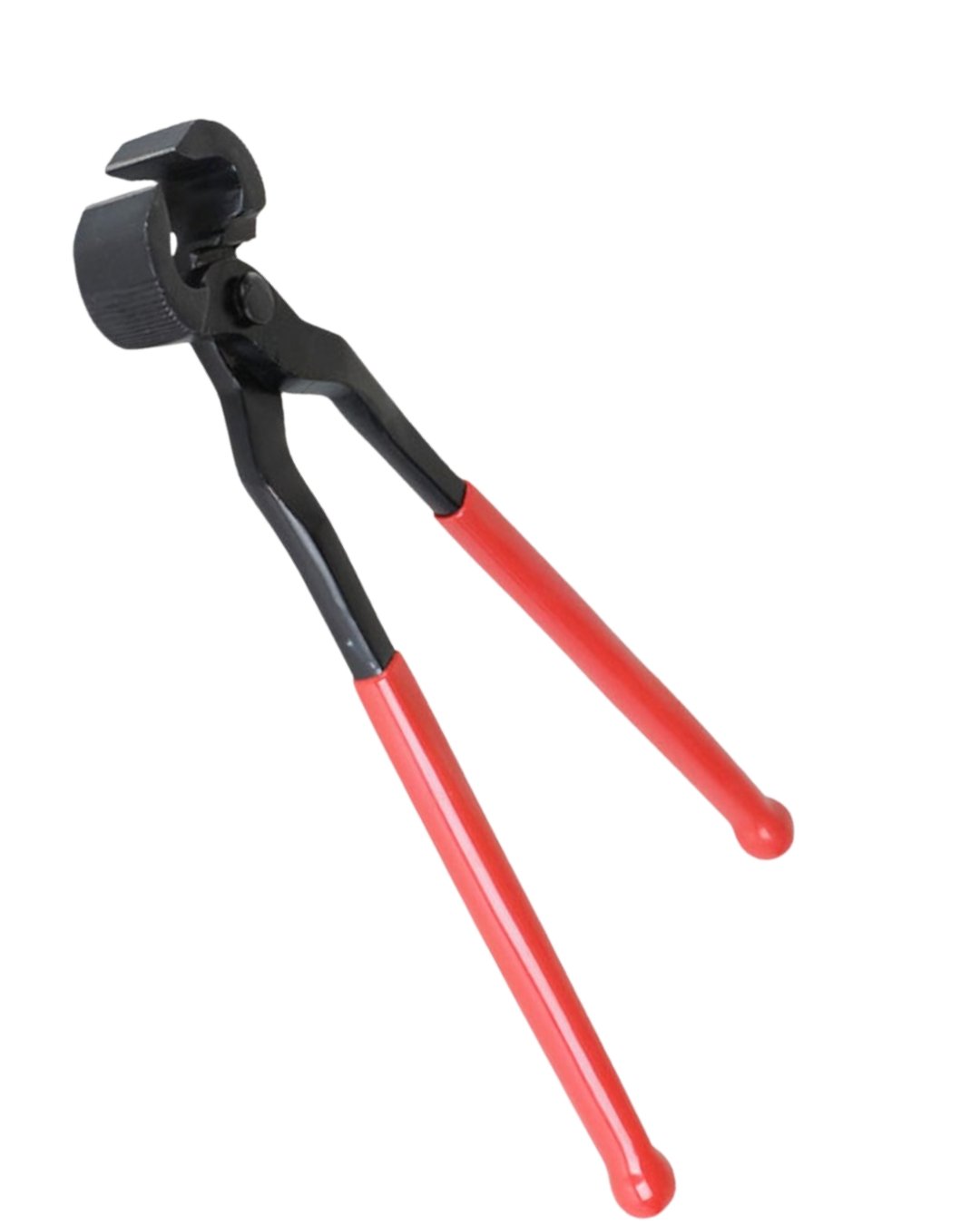 Built from tough forged steel with a durable black head and body paired with vibrant red non-slip grips, this horse shoe puller (also known as pull-offs or pinchers) offers a secure, comfortable hold even in wet or demanding conditions. The wide, contoured jaw with ridged edges provides excellent grip on shoes of various sizes, while the long handles deliver superior leverage for controlled pulling without damaging the hoof wall.